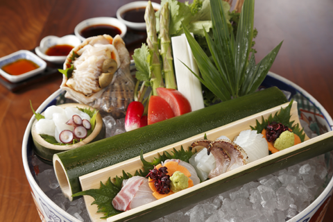 Tucked inside Shodoshima’s finest ryokan, the seven-room Shimayado Mari, this unassuming restaurant serves only local fare, including a sashimi & fresh veggie soy sauce tasting plate. Olive-fed Wagyu can be added to the regular course for an extra fee, and it is well worth it! Lightly grilled, then sliced and served with fresh wasabi, the full flavor of the meat comes out as diners realize they’ll never again be satisfied with any other beef.